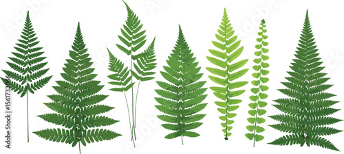 Set of fern leaves isolated on white. Watercolor botanical illustration.