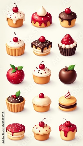 Set of festive sweets icons in vector illustration style, celebration, festive, illustration
