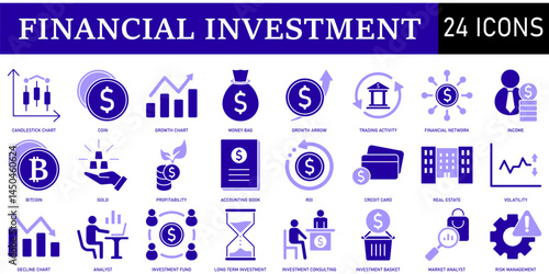 Set of Financial Investment Icons or symbols Vector fully editable file.