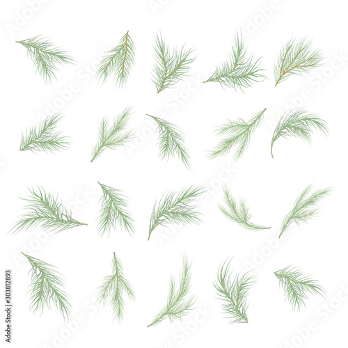 set of fir branches isolated on white background. vector illustration