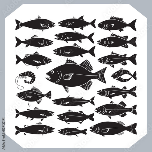 Set of Fish Silhouettes Designed as Versatile Logotype Icons for Various Industries in white background