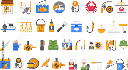 set of fishing tools and equipment series vector illustration