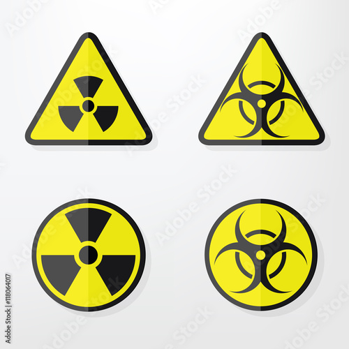 Set of flat paper Triangular and Round Warning Hazard Signs