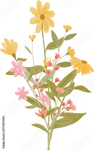 set of flower floral bouquet, flower yellow pink and red for poster, greeting card, wedding concept or invitation design