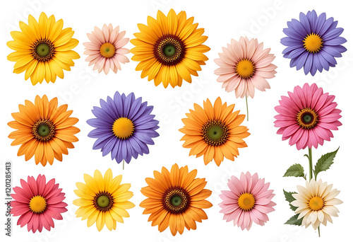 set of flowers isolated on white