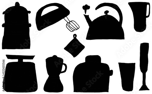 Set of food and kitchen icons. The contour collection of culinary icons. For advertising, Internet, banner, menu