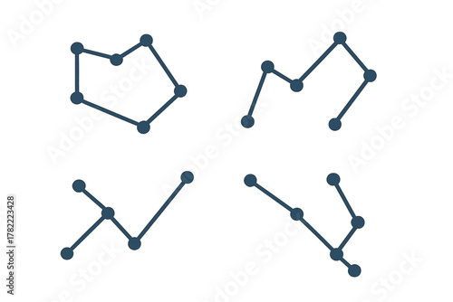 Set of four abstract geometric shapes symbolizing network connections and data flow