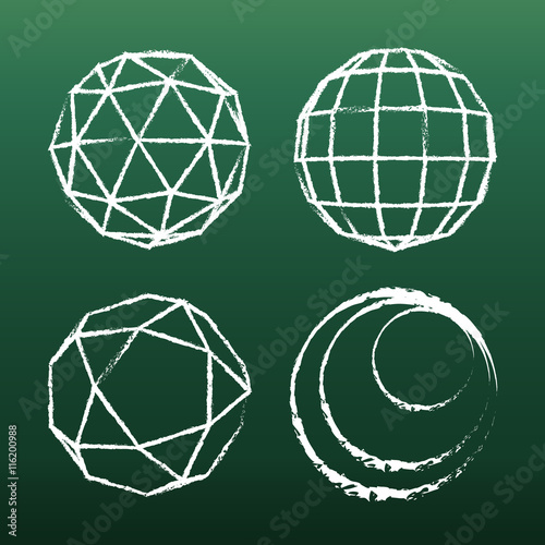 Set of four chalk-painted geometric shapes (vector)