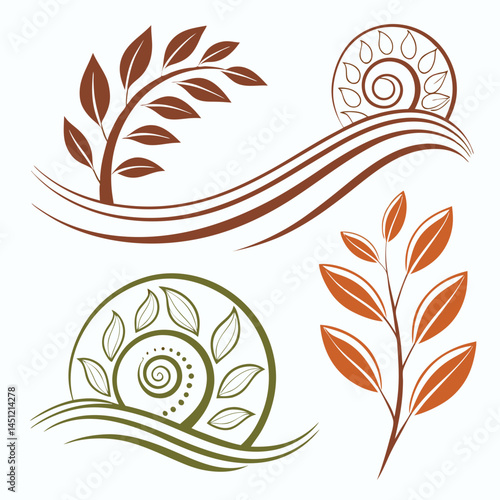 Set Of Four Nature Related Symbols With Organic Shapes And Lighthouse Design
