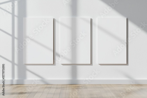 Set of four posters mock-up on a blank, minimalistic background, perfect for showcasing artwork or design templates