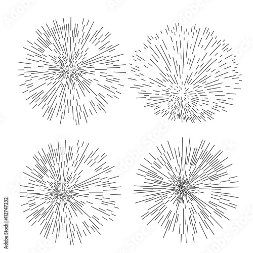 Set of four Retro Sun Burst Shapes. Trendy Hipster Sunburst Design Elements. Bursting Sun Rays Frames. Light Ray Vintage Style Elements
