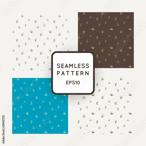 Set of four vector abstract seamless patterns of twigs painted by hand