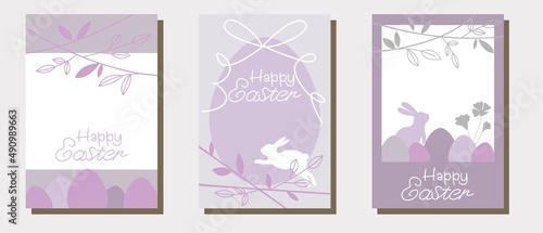 Set of frames for Easter festival. Flower, eggs and Bunny decoration vector template collection. Vector illustration.