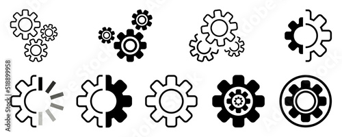 Set of gear vector icons. Cogwheel gear on white background. Setting symbol. Vector 10 ESP.