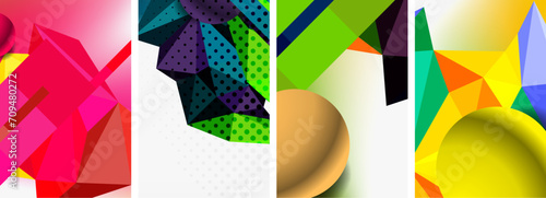 Set of geometric abstract composition with spheres and triangles. Vector illustration For Wallpaper, Banner, Background, Card, Book Illustration, landing page