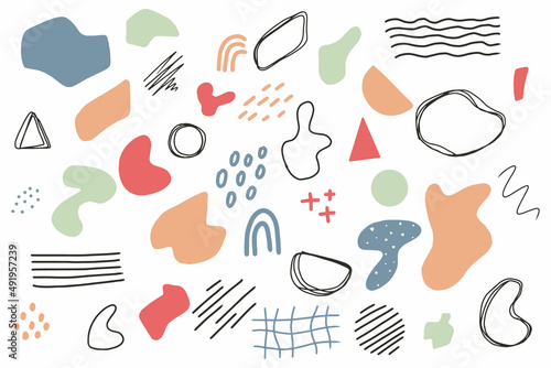Set of geometric elements. Clip art set. Drawn abstract elements. Vector set in doodle style.