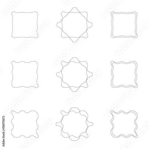 Set of geometric squares, frames and logos with arrangements. Lines and designs, vector illustrations.