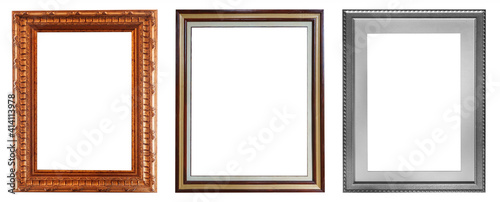 Set of gilded antique picture frames isolated on white background.