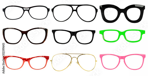 Set of glasses isolated on white background for applying on a portrait
