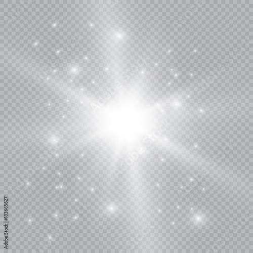 Set of glowing light effects with transparency isolated on plaid vector background. Lens flares, rays, stars and sparkles with bokeh collection.