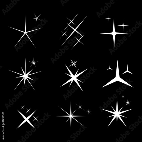 Set of Glowing Light Stars with Sparkles Vector Illustration