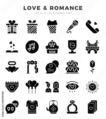 Set of Glyph Love & Romance Icons. Glyph art icon. Vector illustration