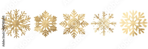 Set of gold christmas snowflakes on white background
