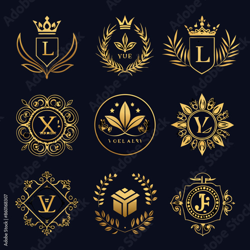 set of gold framed labels