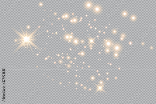 Set of gold glowing light effects isolated on transparent background. Glow light effect. Star exploded sparkles.