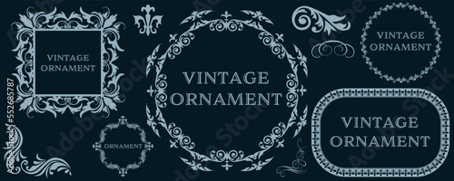 set of graphic materials, oriental patterns, arabesque patterns, antiques, decorative borders and vintage frames.