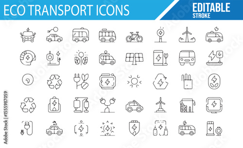 Set of Green Transport, Solar, and Wind Energy Icons