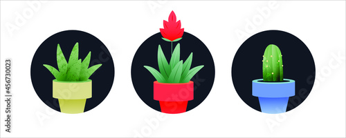 Set of Growing Plant in Pot. Modern Flat Vector Illustration. Gardening Badges. Social Media Template.