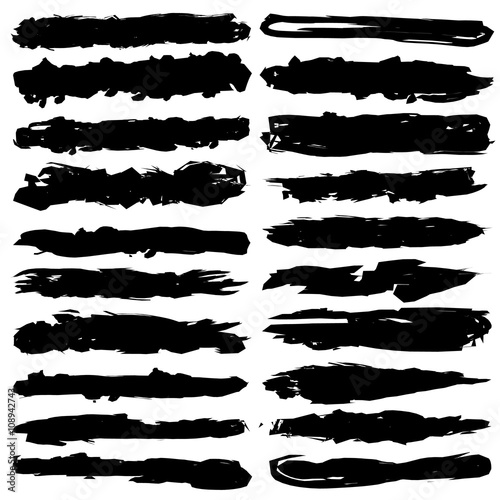 Set of grunge brush strokes, black ink brushes