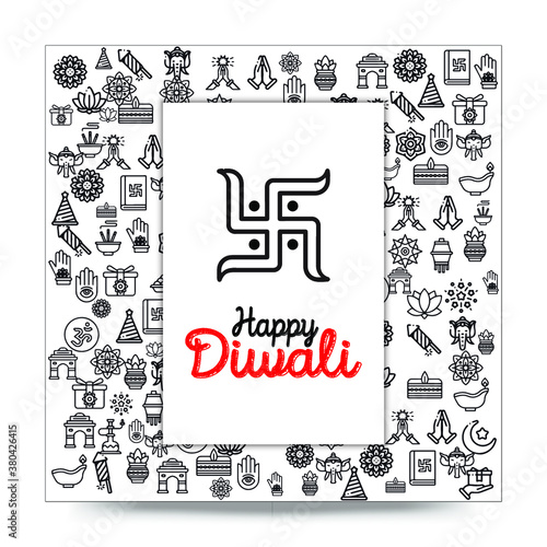 Set of Hand draw Happy Diwali Doodle backgrounds. Objects from Diwali doodle icons.