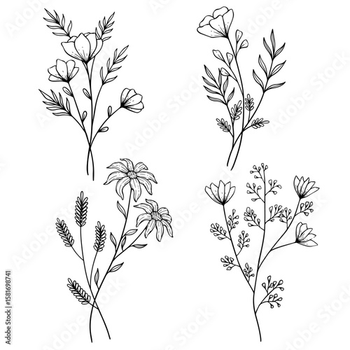 Set of Hand Drawing Flower Illustration. Best for vintage decoration