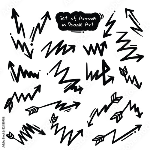 set of hand drawn arrows in zigzag shape with various directions and number of simple zigzags