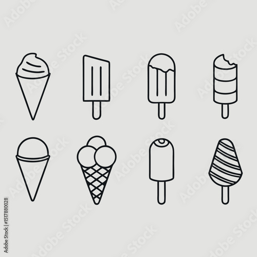 Set of hand drawn black and white ice cream illustrations for summer and dessert designs