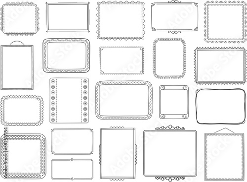Set of hand drawn doodle frames, horizontal, vertical and square frames