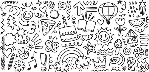 Set Of Hand Drawn Doodle Line Vector Illustration