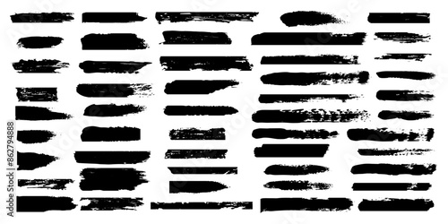 Set of hand drawn grunge black brush strokes, isolated on white background.