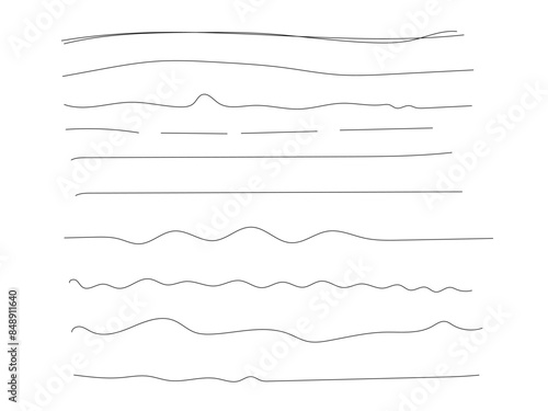 Set of hand drawn line brushes.Hand drawn lines and dividers.Doodle line borders.
