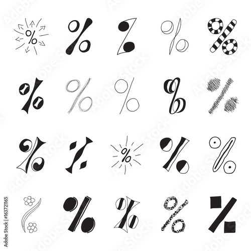 Set of hand drawn percent signs.