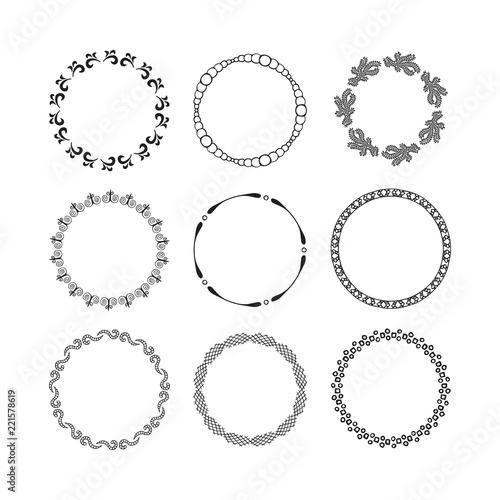 Set of hand drawn round frames. Vector isolated.