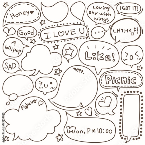 Set of Hand Drawn Speech and Thought Bubbles Doodle