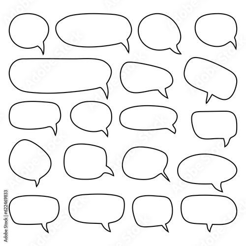 Set of hand drawn speech bubbles. Set of speech bubbles. Vector illustration isolated on white background.