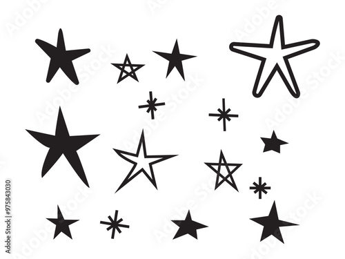 Set of hand drawn stars. stars doodle hand drawn sparkling monochrome comic elements collection. Doodle star illustrations.