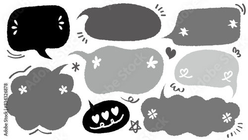 Set of hand drawn style cute memo sticker. Variety abstract shapes of speech bubble. quote gray scale frames blank with crayon draw. Chat box balloon cloud. Label tag collection vector for text.