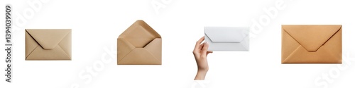 Set of hand gently holds a crisp envelope ready to deliver a heartfelt message, craft paper envelopes symbolizing simple elegance and timeless communication isolated on transparent