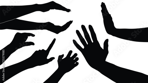set of hand silhouettes isolated on white, Vector collection of human hands of different gestures, hands gesturing black, Black hands silhouettes, vector illustration