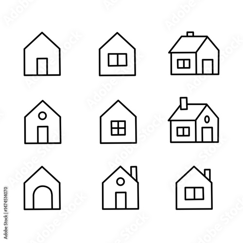 Set of Hand-Drawn House Icons – Minimalist Home Symbol Collection